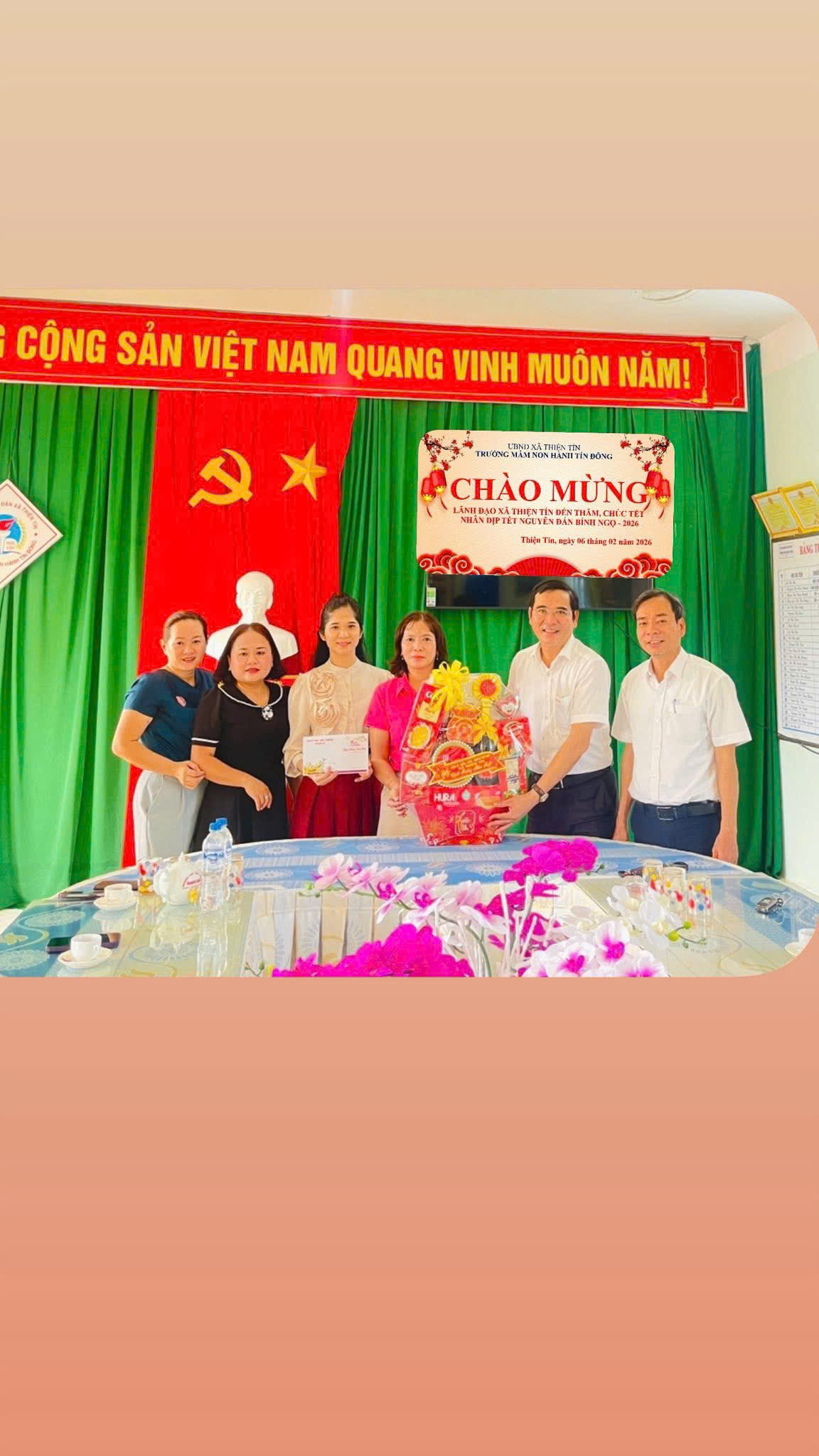 06/02/2026, trong không khí rộn ràng những ngày giáp Tết Nguyên đán Bính Ngọ 2026, lãnh đạo Đảng ủy, HĐND, UBND, Ủy ban MTTQ Việt Nam xã Thiện Tín đã đến thăm và chúc Tết tập thể cán bộ, giáo viên, nhân viên Trường Mầm non Hành Tín Đông.