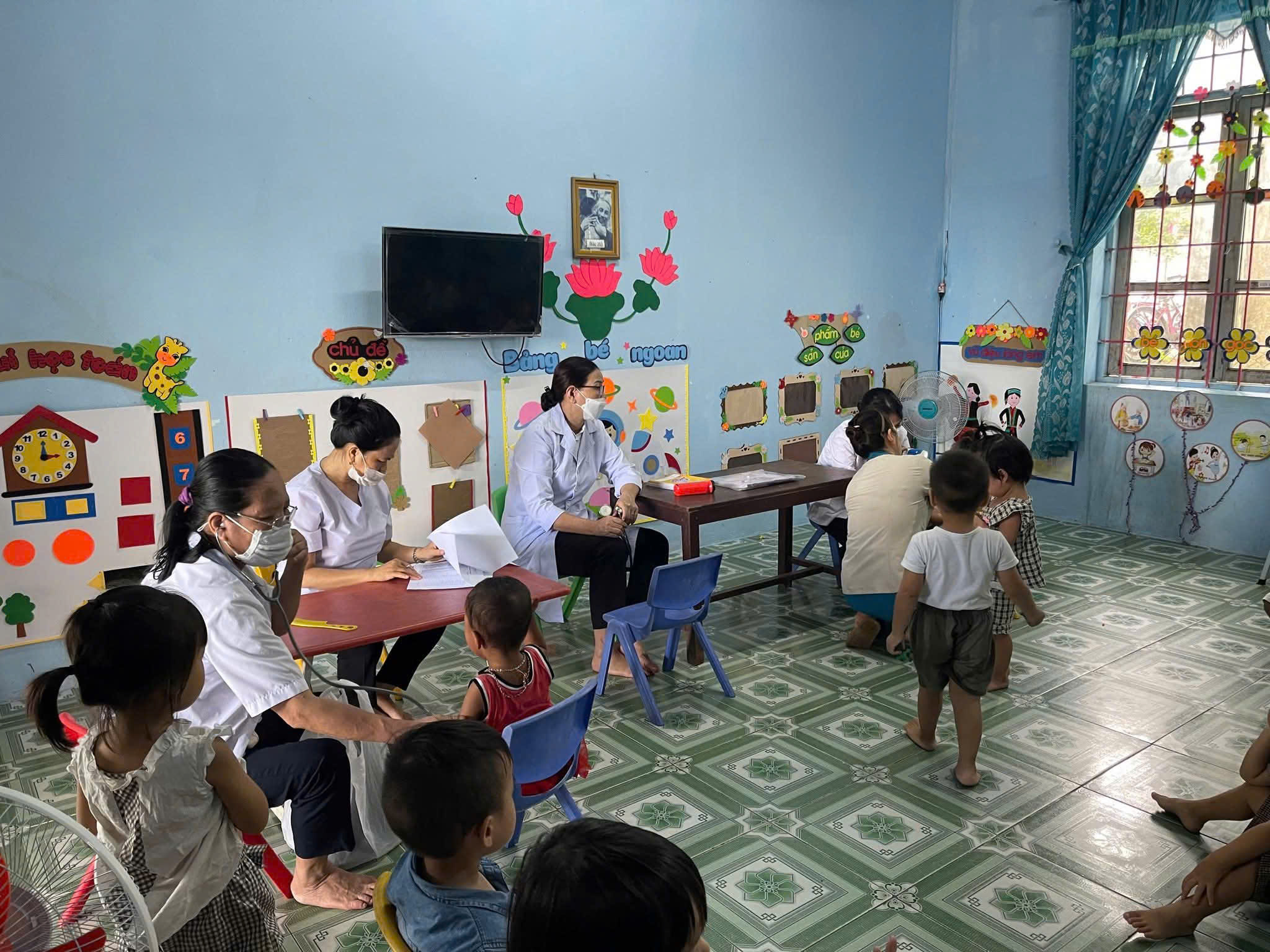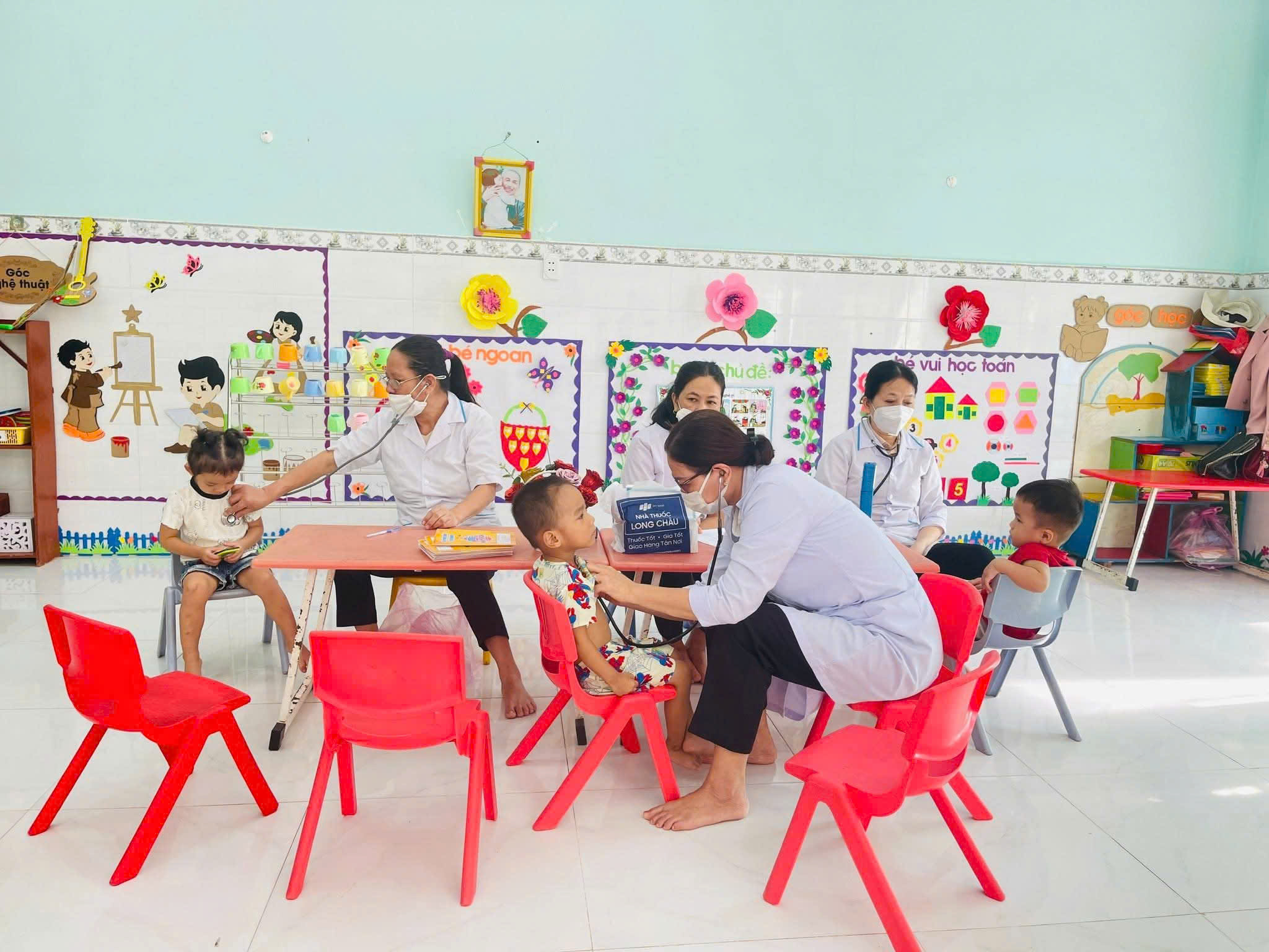 Trường mầm non Hành Tín Đông kết hợp với Trạm y tế Hành Tín Đông để khám sức khỏe tổng quát cho các bé.